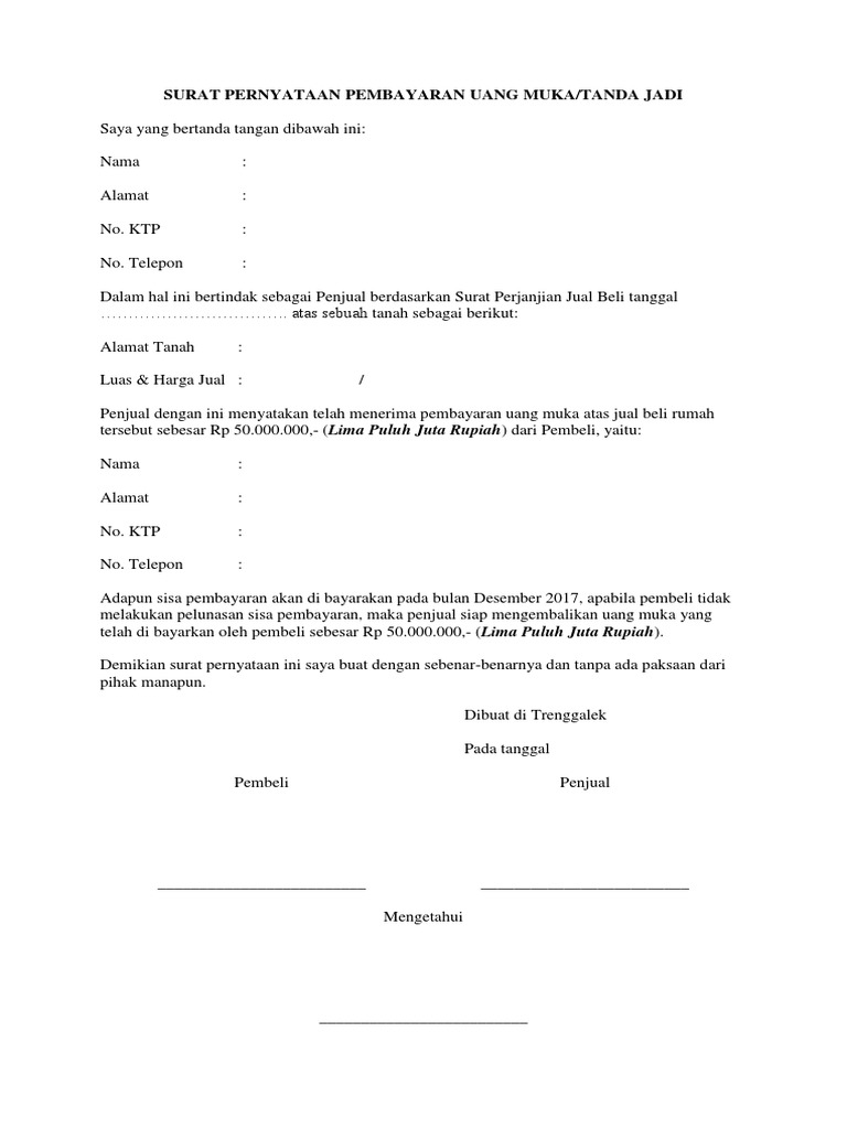 Surat Pembayaran Uang Muka Tanah Pdf